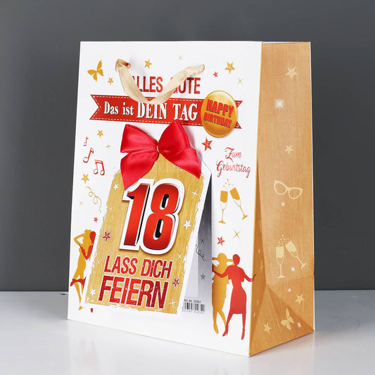 Eine schöne Verpackung für Geburtstagsgeschenke kann die Freude am Schenken erhöhen und den Erhalt des Präsents zu einem unvergesslichen Erlebnis machen. Daher empfehlen wir Ihnen unsere personalisierten Verpackungen, die beispielsweise mit dem Namen des Geburtstagskindes, dem Alter oder sogar einem Text mit Ihren persönlichen Glückwünschen bedruckt werden!