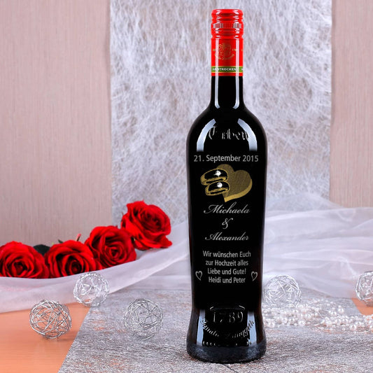 Weinflasche zur Hochzeit mit persönlicher Gravur