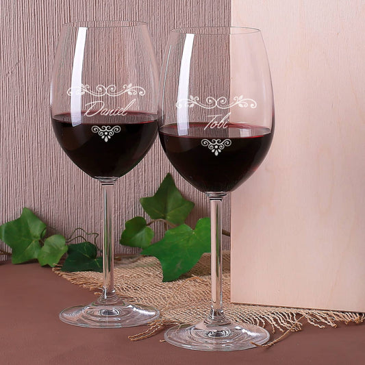 Weinbox Weinranke mit 2 gravierten Gläsern