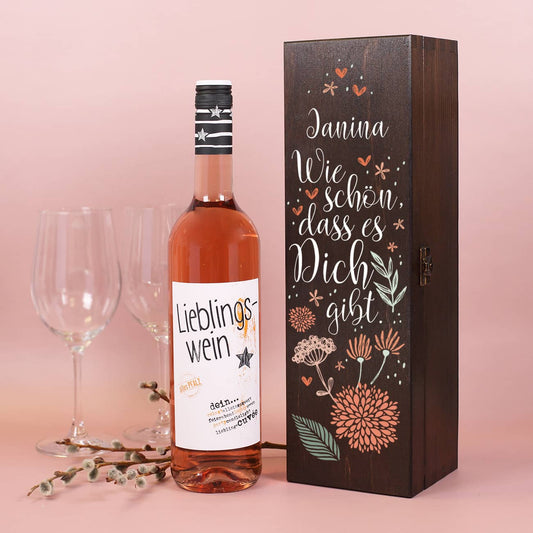Wie schön, dass es Dich gibt. - Bienenfreundlicher Biorebe Wein in personalisierter Holzbox