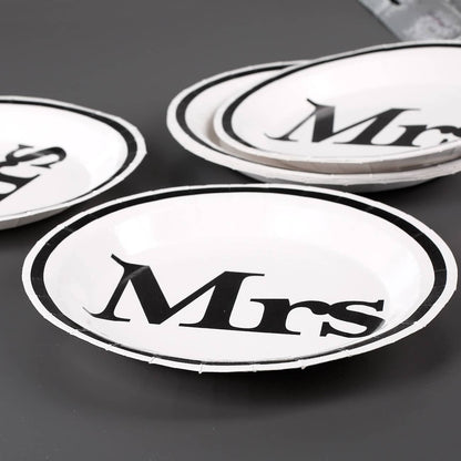 Ob für die Hochzeitsfeier oder für den Polterabend mit diesen originellen Papptellern im Mrs-Design wird Ihre Tischdekoration zum absoluten Hingucker!
