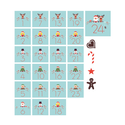 Sie brauchen Adventskalender Aufkleber für die bevorstehende Adventszeit? Das Aufkleber Set mit niedlichen Weihnachtsmotiven zaubert kleinen und großen Kindern garantiert ein Lächeln ins Gesicht. Sie sind in tollen weihnachtlichen Farben gehalten. Der Bogen enthält 24 Sticker für jedes "Türchen" des Adventskalenders und 4 extra Motive zum bekleben Ihrer Päckchen und Tütchen. So ist jeder Adventskalender schnell aufgewertet und der oder die Beschenkte findet das passende Geschenk zum jeweiligen Adventstag zügig!