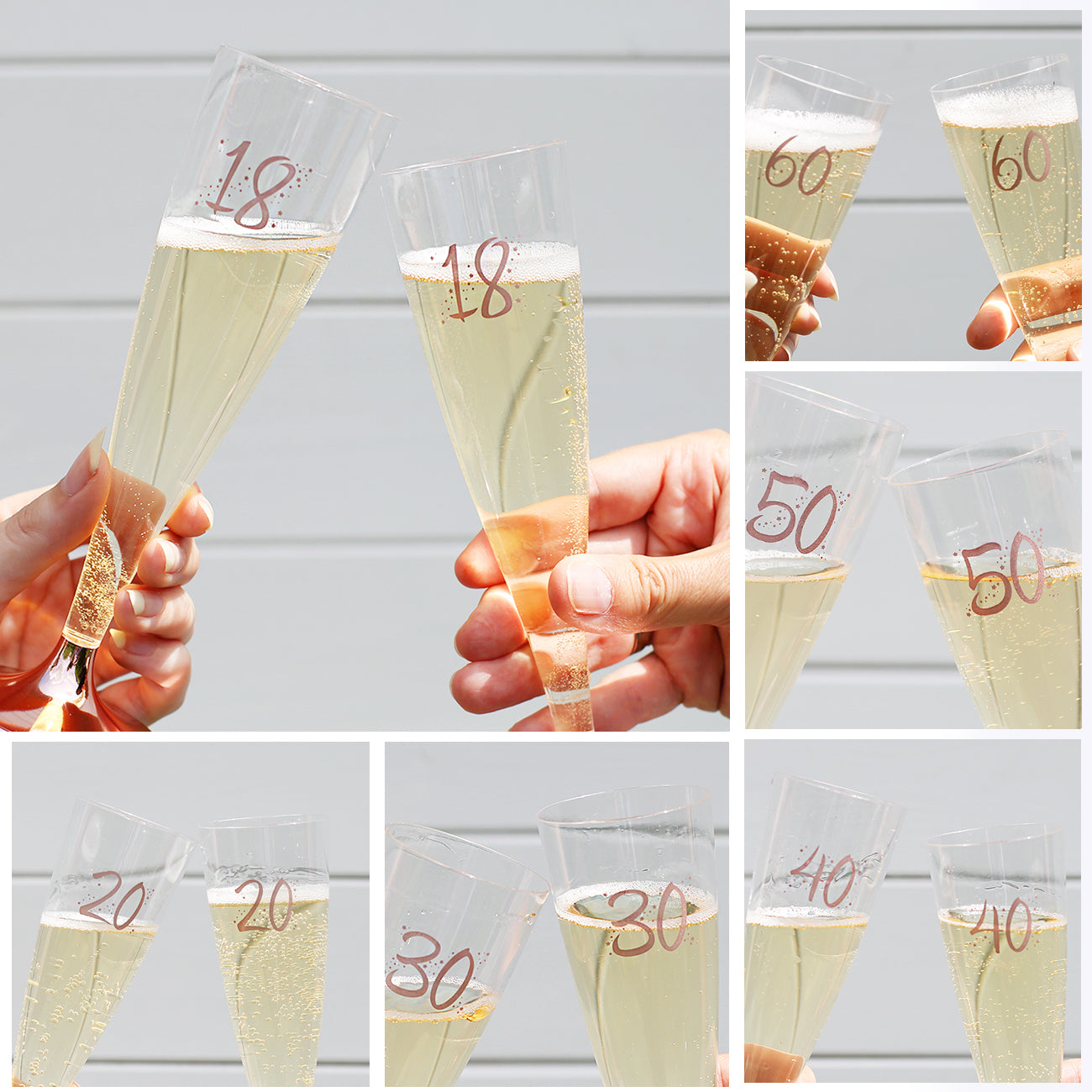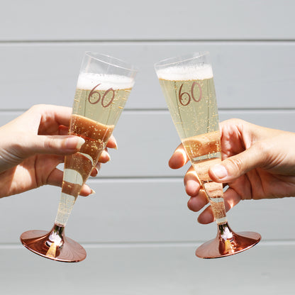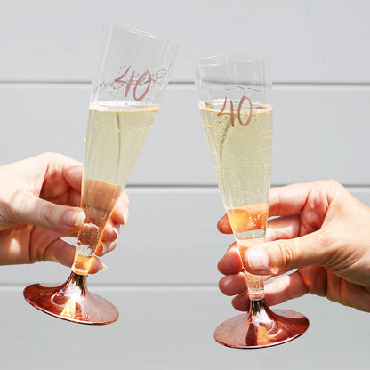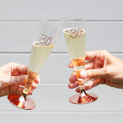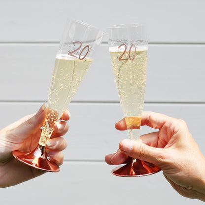 6 Plastiksektgläser mit rosefarbener Zahl