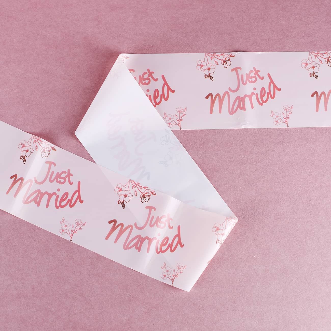 Mit diesem rosa Absperrband können Sie Ihre Hochzeit auf besondere Art und Weise dekorieren. Es wird einseitig mit Blumen und dem Schriftzug "Just Married" bedruckt. Die Hochzeitsdeko kann beispielsweise als Absperrband für den Hochzeitssaal dienen, das das Brautpaar dann durchschneiden muss. Auch für Hochzeitsspiele lässt sich das Absperrband wunderbar einsetzen.