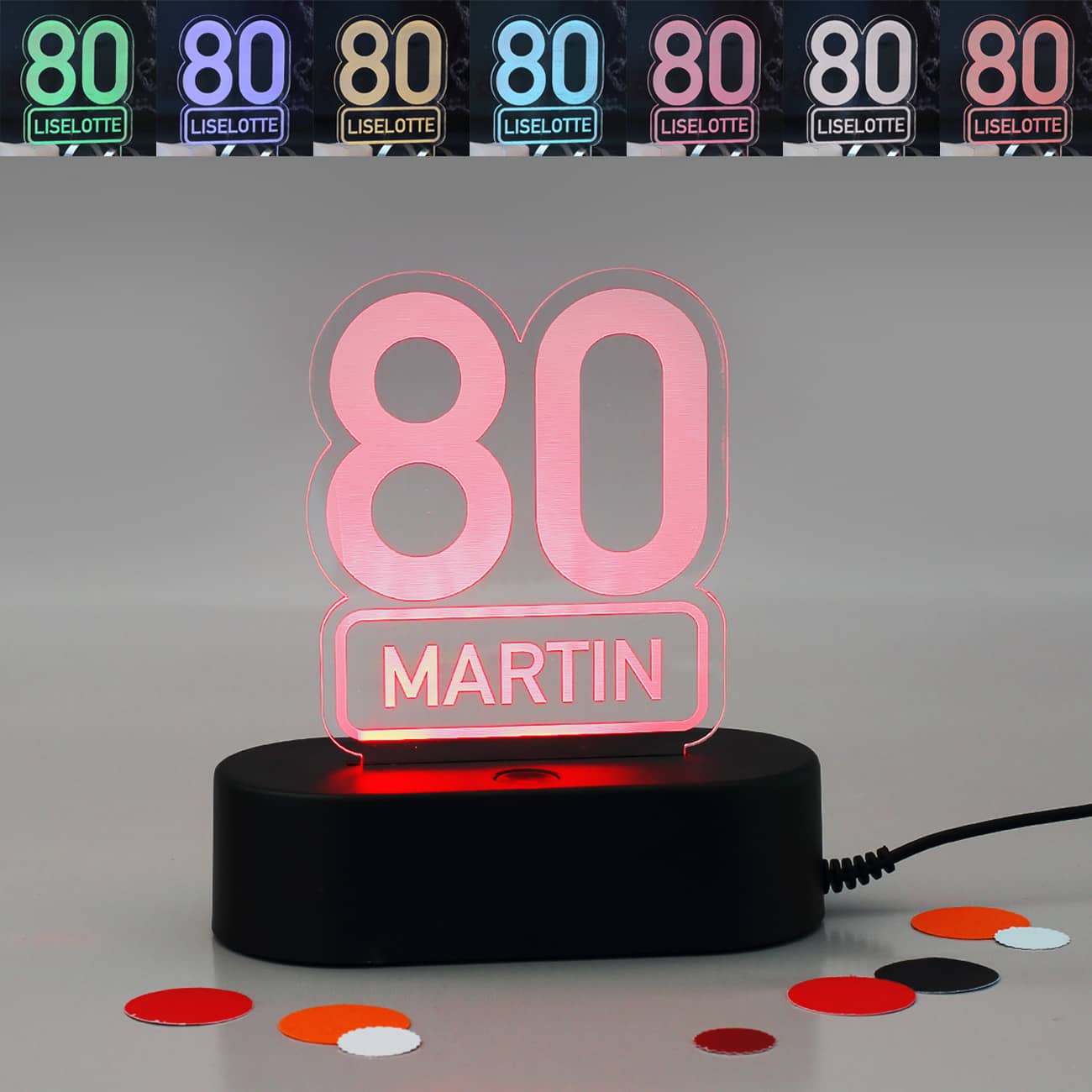 Acryllampe zum 80. Geburtstag mit Name