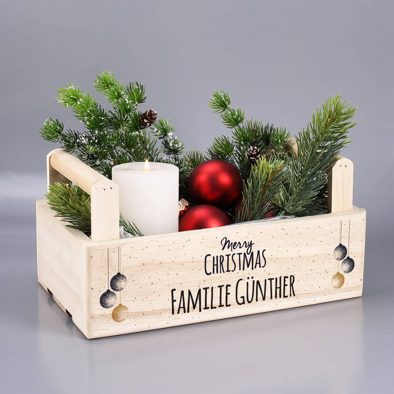 Bedruckte Holzkiste zu Weihnachtem mit Ihrem Text
