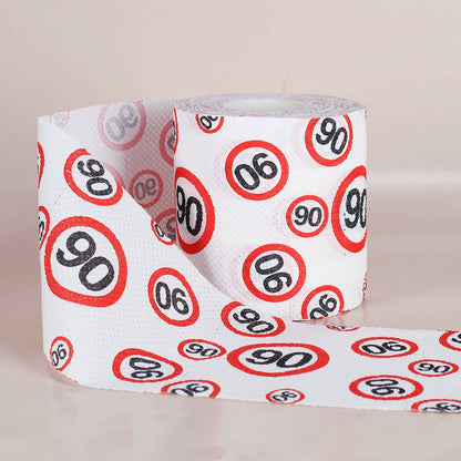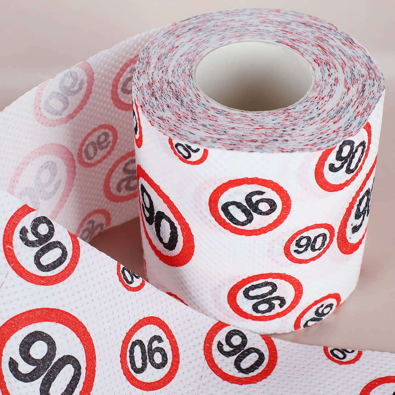 Dieses bunt bedruckte Klopapier mit dem Achtung 90 Verkehrszeichen ist perfekt für den 90. Geburtstag. Nutzen Sie es als witziges Mitbringsel und Geburtstagsgeschenk für den nächsten runden Geburtstag, um das Geburtstagskind mit etwas Lustigem zu überraschen. Aber auch als Geburtstagsdekoration im Gäste-WC oder Badezimmer wird dieses Klopapier jeden erfolgreich zum Schmunzeln bringen. Etwas Toilettenpapier kann man schließlich immer gebrauchen, auch nach den Feierlichkeiten zum 90. Geburtstag!