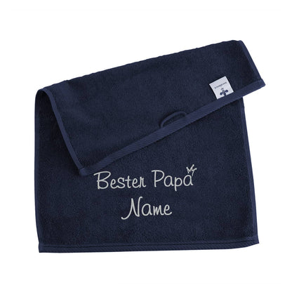 Bester Papa - nachtblaues Handtuch mit Name bestickt, 3 Größen zur Auswahl