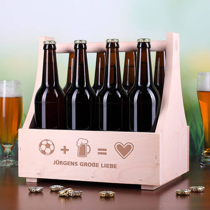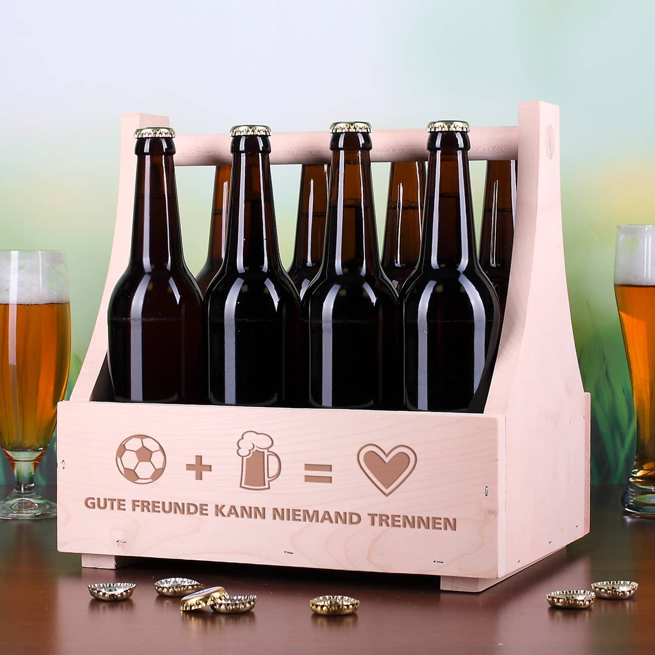 Bierträger aus Holz für Fußballfans mit Wunschtext graviert