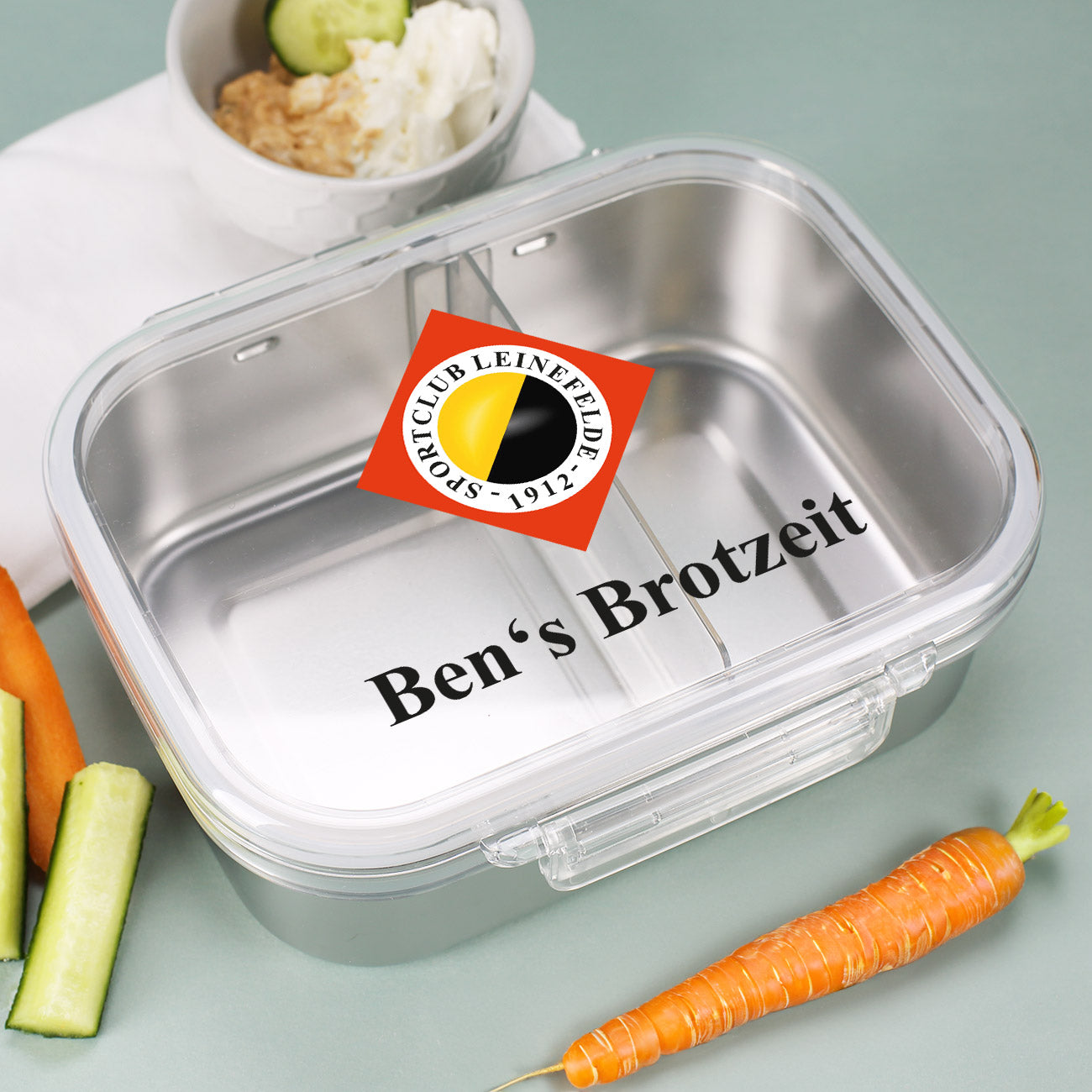 Mit der personalisierbaren Brotdose vom SC Leinefelde 1912 nimmst du nicht nur dein Lieblingsessen, sondern auch ein Stück Vereinsliebe mit zur Schule, ins Büro oder zum Ausflug. Praktisch unterteilt, aus robustem Edelstahl und mit deinem Wunschnamen bedruckt – so macht Brotzeit richtig Spaß!