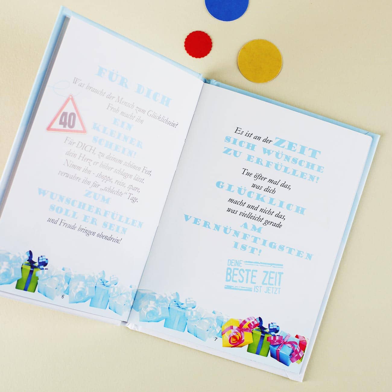 Büchlein Alles Gute zum 40. mit Platz für Geldgeschenk
