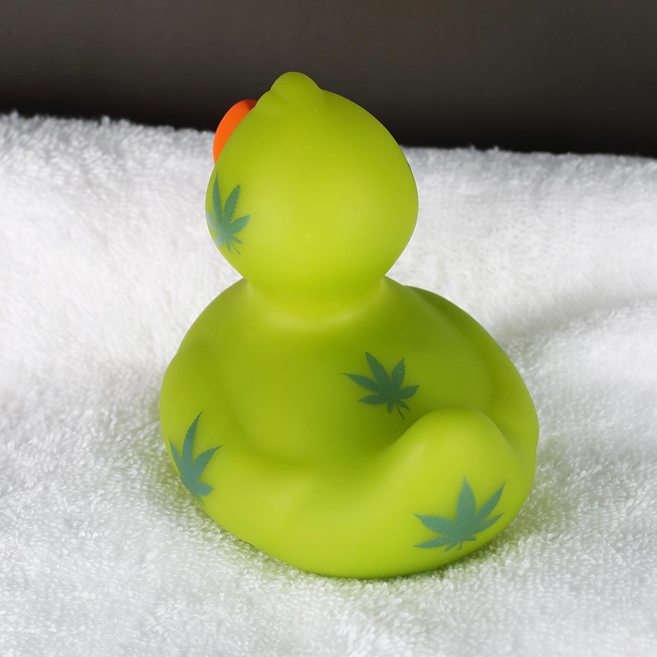 Tauschen Sie doch die gelbe Gummiente mit einer grünen Cannabis Quietsche-Ente aus! Diese witzige Badeente ist für den Typen gedacht, der zu etwas Grünem für Entspannung nicht Nein sagen wird. Bedruckt wird die hellgrüne Gummiente mit einem Hanf-Muster und sogar leicht geröteten Augen. Wenn Sie diese Quietsche-Ente als witziges Geburtstagsgeschenk überreichen, dann sind die Lacher garantiert.