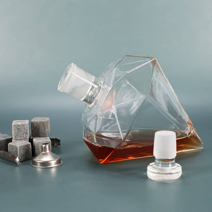 Das Diamond Decanter Set bietet nicht nur die Karaffe, sondern noch weitere nützliche Gegenstände für den Whiskygenuss. Enthalten sind 9 Whiskysteine, ein Beutel, eine Eiszange und ein Trichter für das zuverlässige Einschütten des Alkohols in den Dekanter. So ein Whisky Geschenk kann als Vatertagsgeschenk, Geburtstagsgeschenk oder auch zu einem ganz anderen Anlass überreicht werden. Eine gelungene Überraschung wird dieses edle Präsent immer sein.