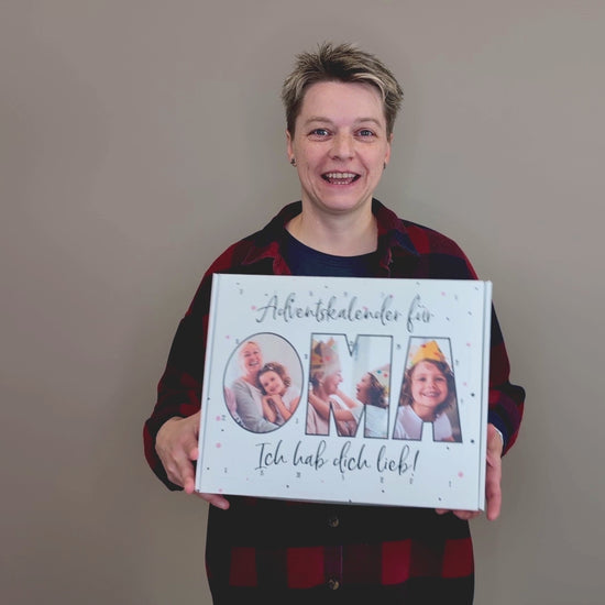 Unser DIY Adventskalender für Oma mit Fotos bietet Ihnen eine wunderbare Möglichkeit, Ihrer geliebten Oma in der Weihnachtszeit eine persönliche und herzerwärmende Freude zu bereiten. Statt eines gewöhnlichen Adventskalenders schenken Sie Ihrer Oma ein ganz besonderes Erlebnis, bei dem Ihre Familie und die Liebe zu Ihrer Großmutter im Mittelpunkt stehen. Die Möglichkeit, diesen Adventskalender mit drei Ihrer Lieblingsfotos zu personalisieren, verleiht ihm eine einzigartige Note. Diese Fotos werden in die Buchstaben des "OMA"-Schriftzuges integriert, was den Kalender zu einer wahrlich besonderen Geschenkidee macht.