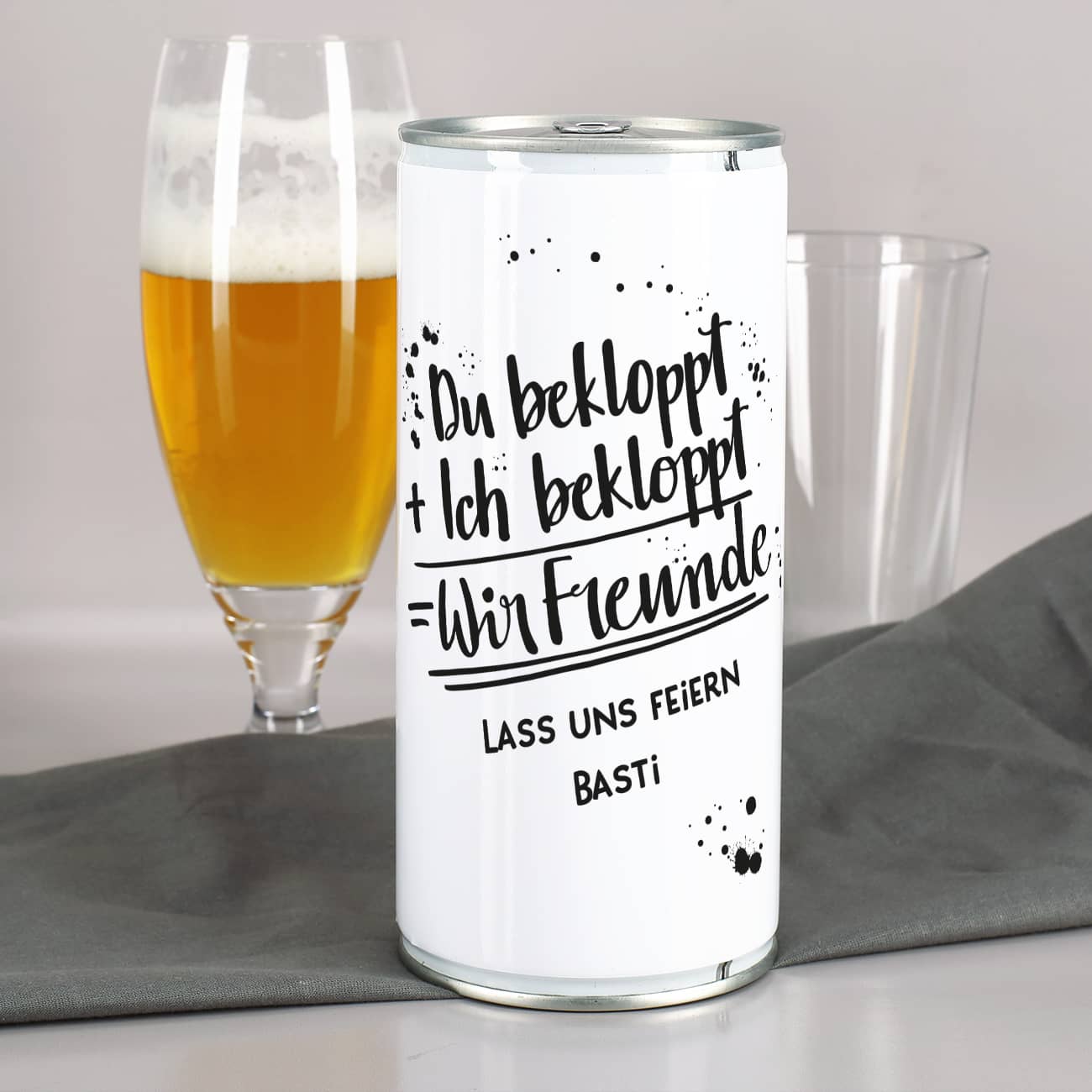 Du bekloppt, Ich bekloppt, Wir Freunde - 1 L Bierdose mit Ihrem Wunschtext