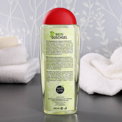 Das Weinduschgel aus der Serie Personal Spa besitzt neben dem lustigen Etikett besonders pflegende Rohstoffe der Weinreben. Sie schützen die Haut auf sanfte Art und Weise - genau das Richtige für die reife Haut.