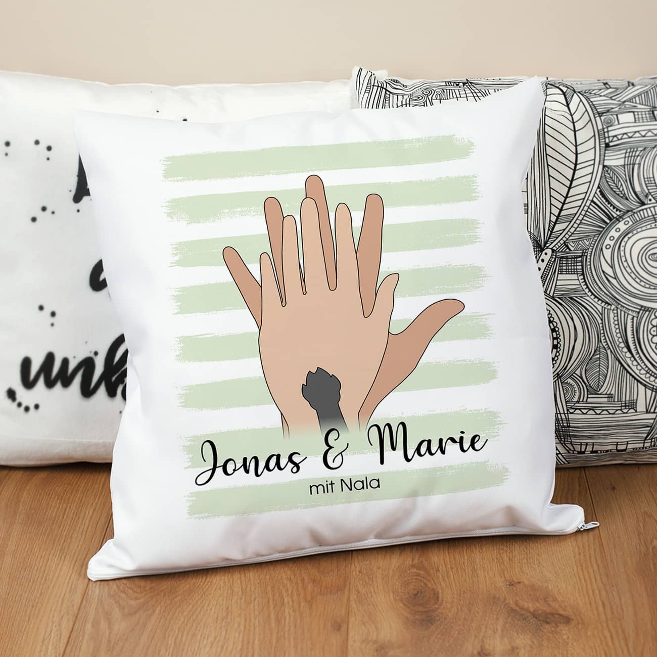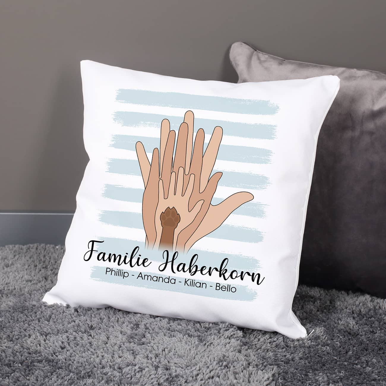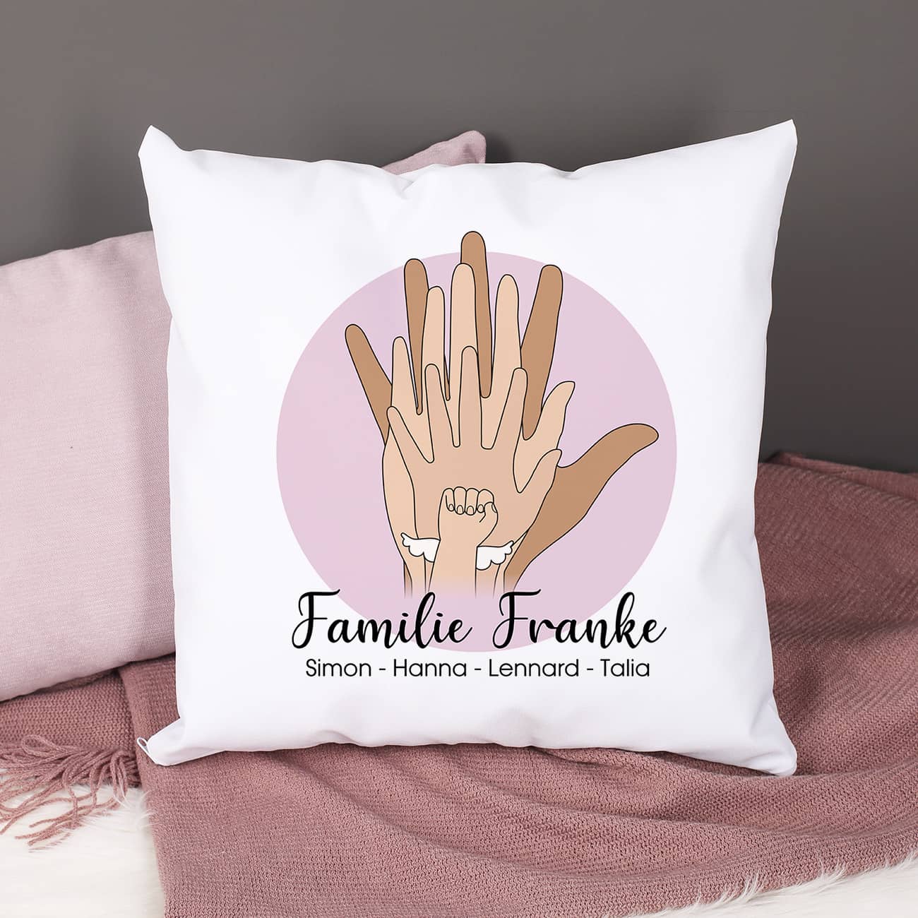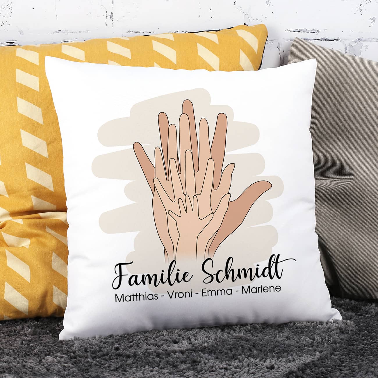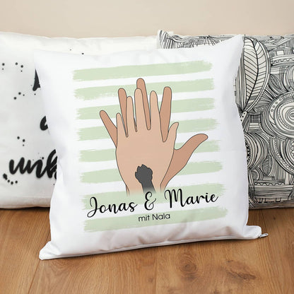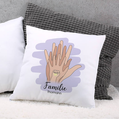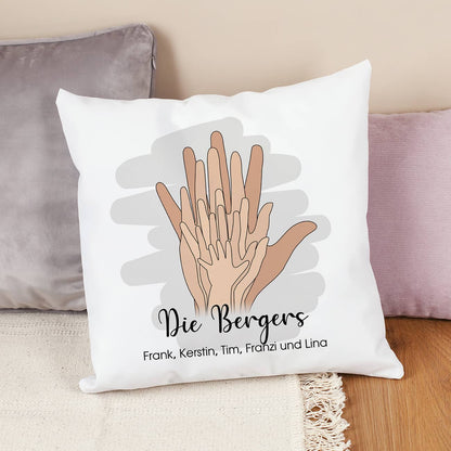 Persönliches Familienkissen mit Händen