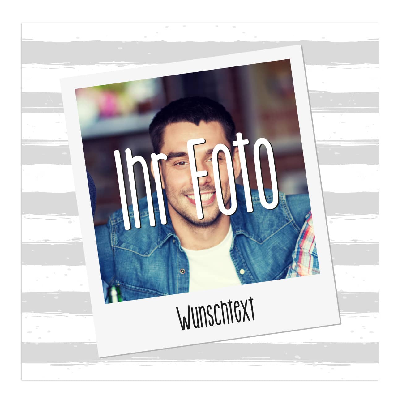 Die Aufkleber sind mit einem weiß-grauen Streifenmuster als Hintergrund bedruckt. Darauf kommt das Foto im Polaroidstil und auf dem breiteren weißen Rahmen unten kommt der Text Ihrer Wahl. Das ist genug Platz, um seine Gedanken für den Beschenkten auszudrücken. Sei es ein Glückwunsch, eine Widmung oder ein witziger Spruch - Ihrer Kreativität werden keine Grenzen gesetzt, solange Sie die Maximalanzahl von 40 Zeichen nicht überschreiten. Bei dem Foto kann es sich um ein Foto des Beschenkten halten, um Gruppenbilder, Familienfotos oder andere Momente, die Sie auf der Bierflasche verewigen wollen. Achten Sie bei der Eingabe des Textes darauf, dass dieser korrekt angegeben wurde, damit der Aufkleber so ankommt, wie Sie es sich gewünscht haben.