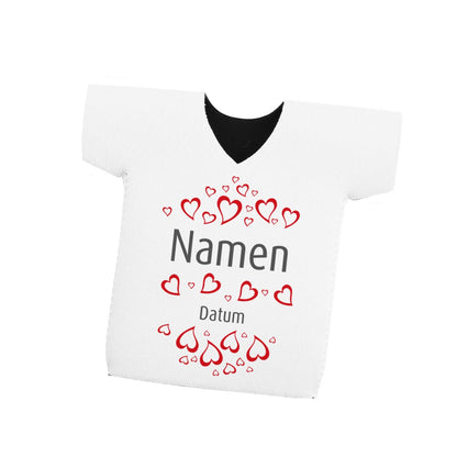 Flaschenkühler aus Neopren zur Hochzeit mit Herzen, Namen und Datum