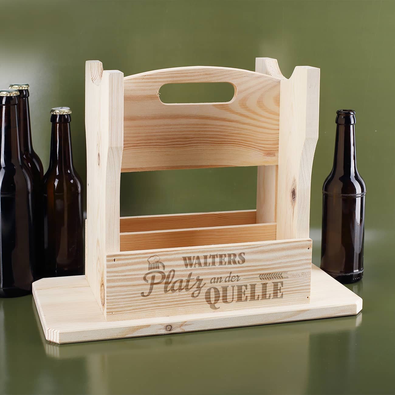 Flaschenträger und Hocker in einem - Platz an der Quelle mit Name graviert