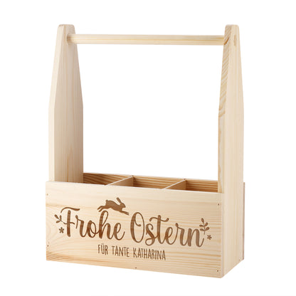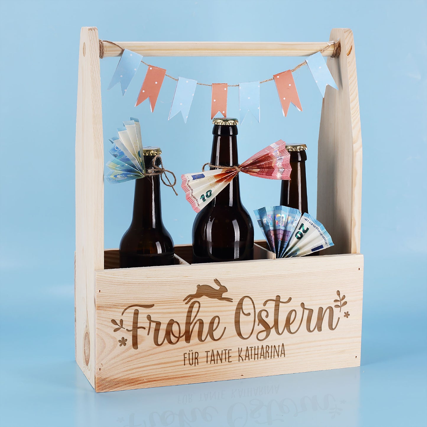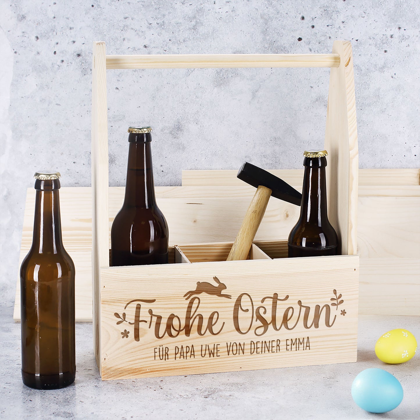 Flaschenträger aus Holz mit Wunschtext graviert | Frohe Ostern