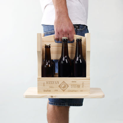 Ob als rustikaler Flaschenträger für bis zu 6 Flaschen oder als stabiler Hocker, der deinem Bier einen festen Stand und dir eine Pause verschafft – dieses Produkt vereint Funktionalität und Fan-Identität auf clevere Weise.