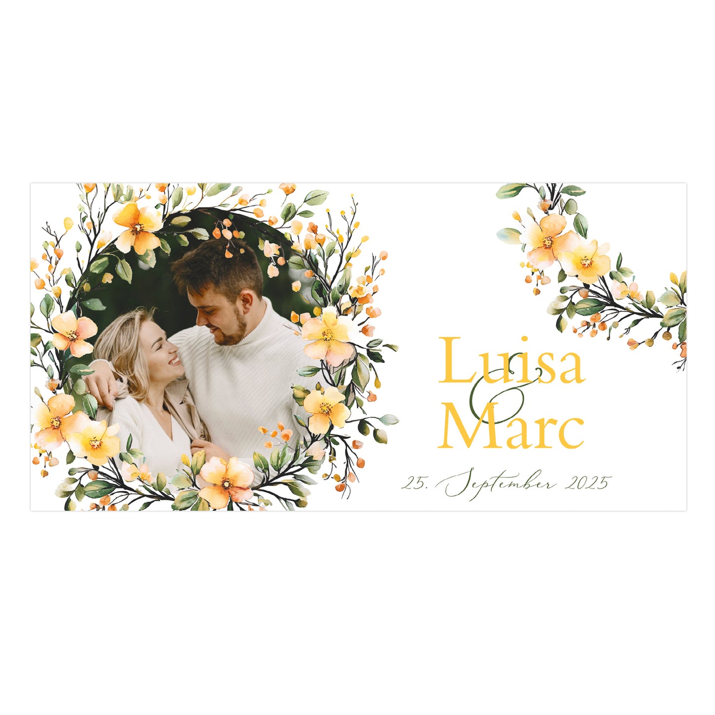Foto-Banner zur Hochzeit mit Namen, Datum und Blumen-Motiv 160x80cm