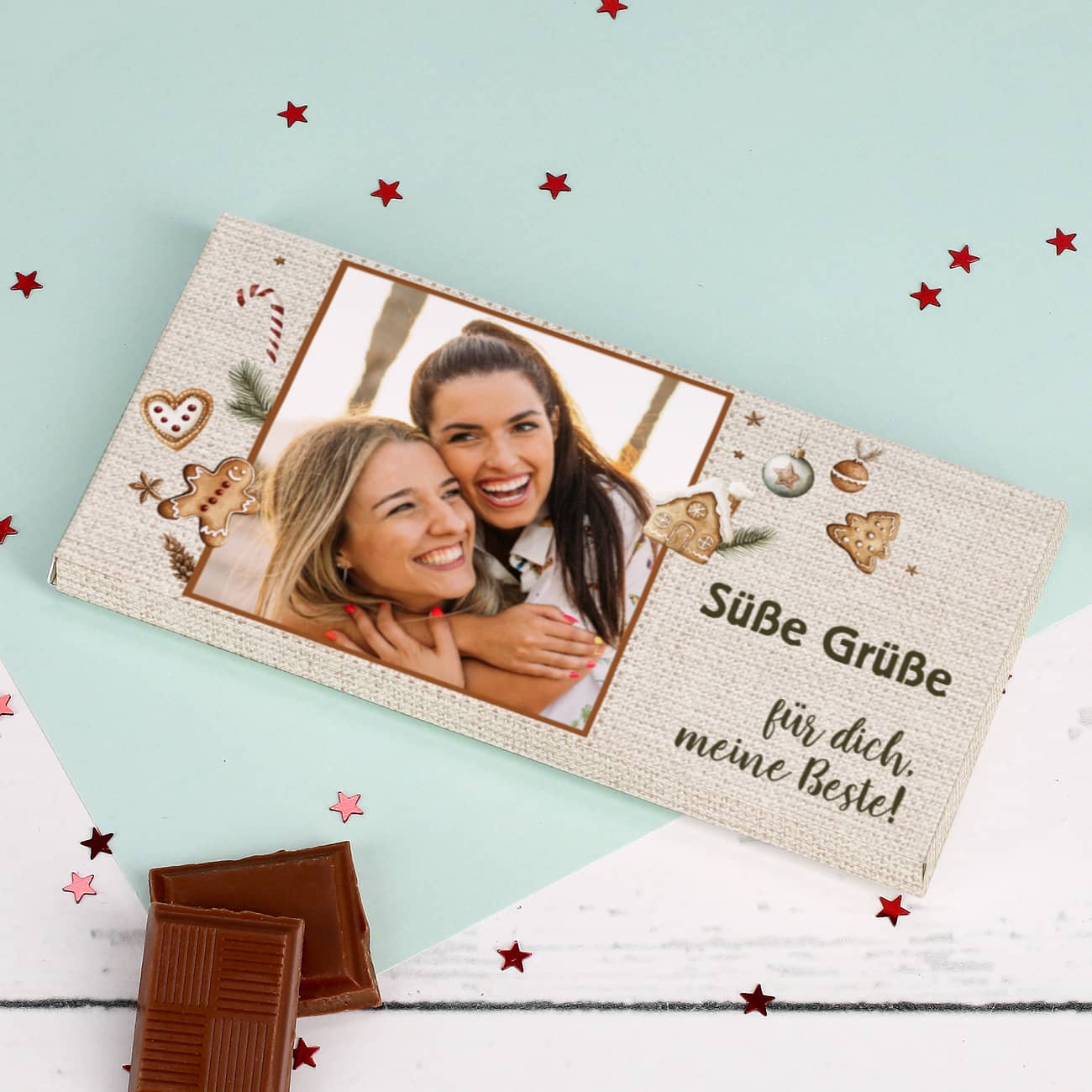 Foto Schokolade zu Weihnachten mit Lebkuchen-Motiv und Ihrem Text