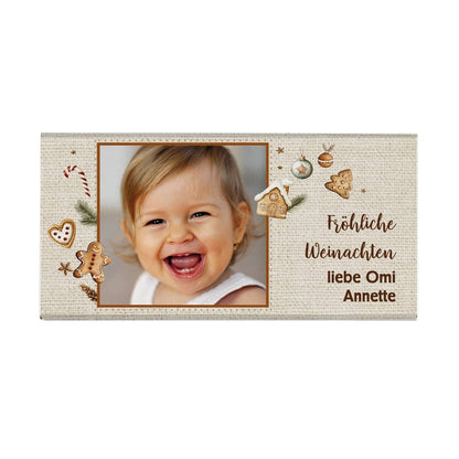 Personalisierte 100g Vollmilchschokolade – Süße Grüße mit Foto und Lebkuchenmotiv