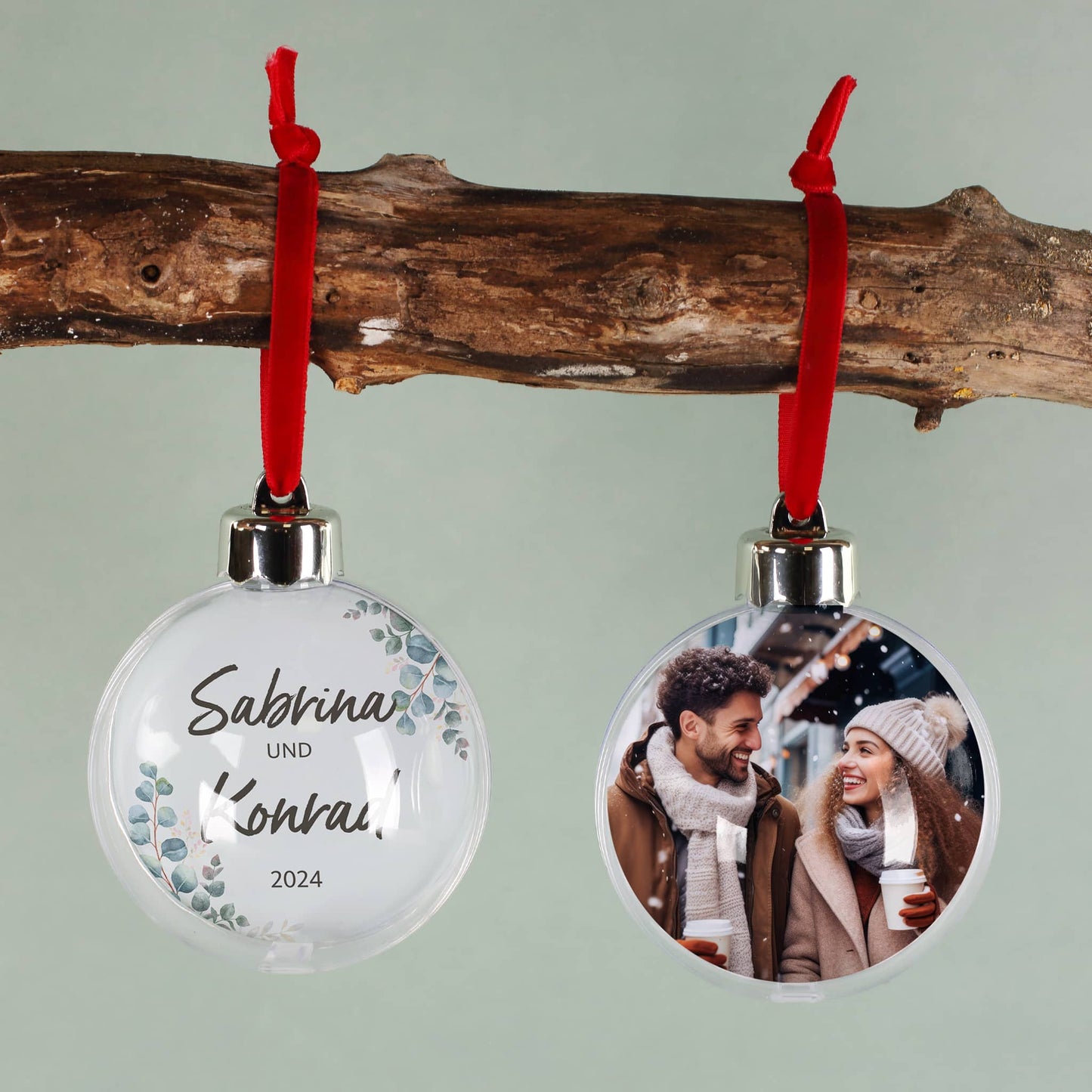 Foto-Weihnachtskugel für Paare mit Eukalyptus Motiv