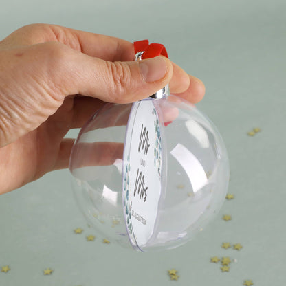 Diese personalisierte Weihnachtskugel ist das perfekte, romantische Geschenk für Paare und eine wunderschöne Dekoration für den Weihnachtsbaum. Eine Seite der Kugel wird mit einem liebevollen Foto des Paares verziert, während die andere Seite die Namen und ein bedeutendes Datum oder eine Jahreszahl trägt, stilvoll umrahmt von einem eleganten Eukalyptus-Motiv. Ein wunderschönes Andenken für Paare, die in der Weihnachtszeit eine besondere Erinnerung schaffen möchten – sei es zur Feier einer Verlobung, Hochzeit oder einfach als Zeichen der Liebe.