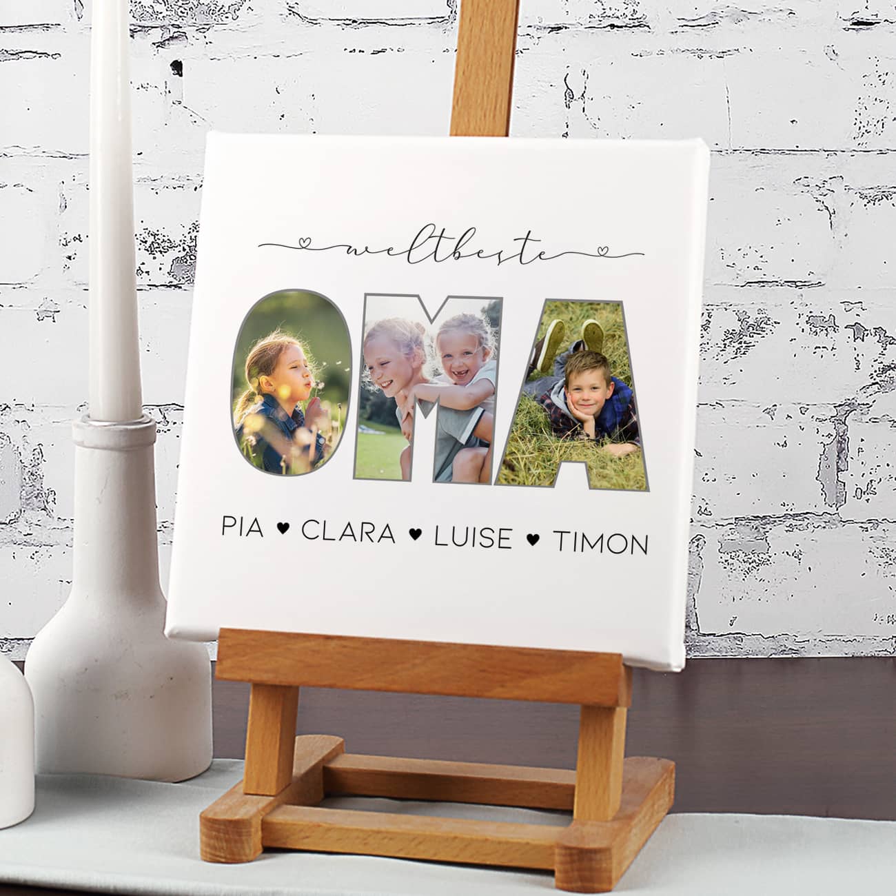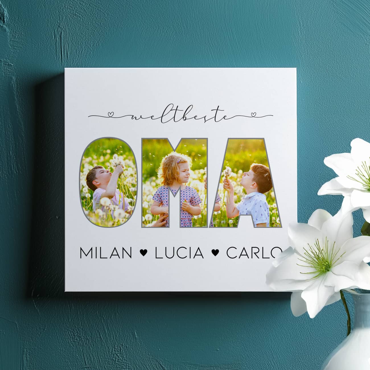 Fotoleinwand "Weltbeste Oma" – Personalisierbar mit 3 Fotos und Wunschtext
