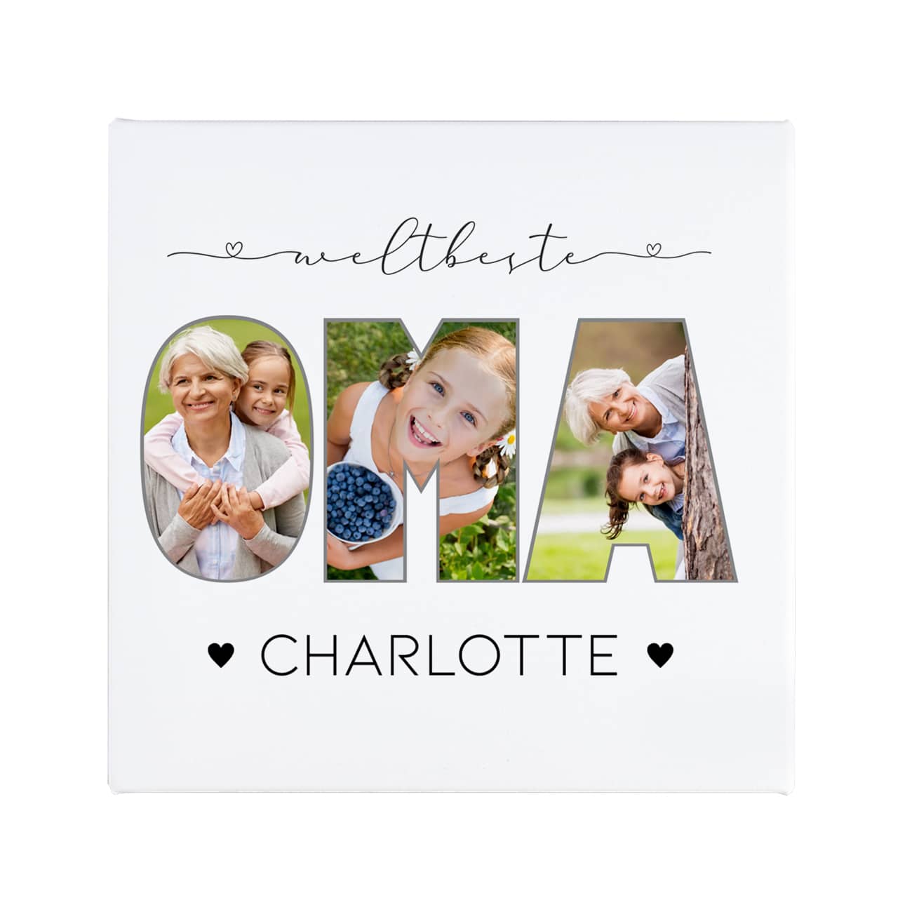 Fotoleinwand - weltbeste Oma - mit 3 Bildern & Wunschtext, 20x20 cm