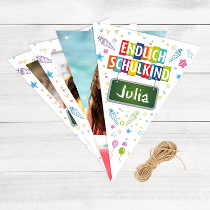Persönlich bedruckte Wimpelkette zur Einschulung