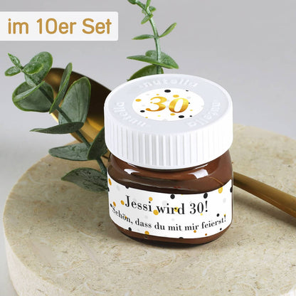 10er Set Nutellas mit Aufklebern als Gastgeschenk zum Geburtstag