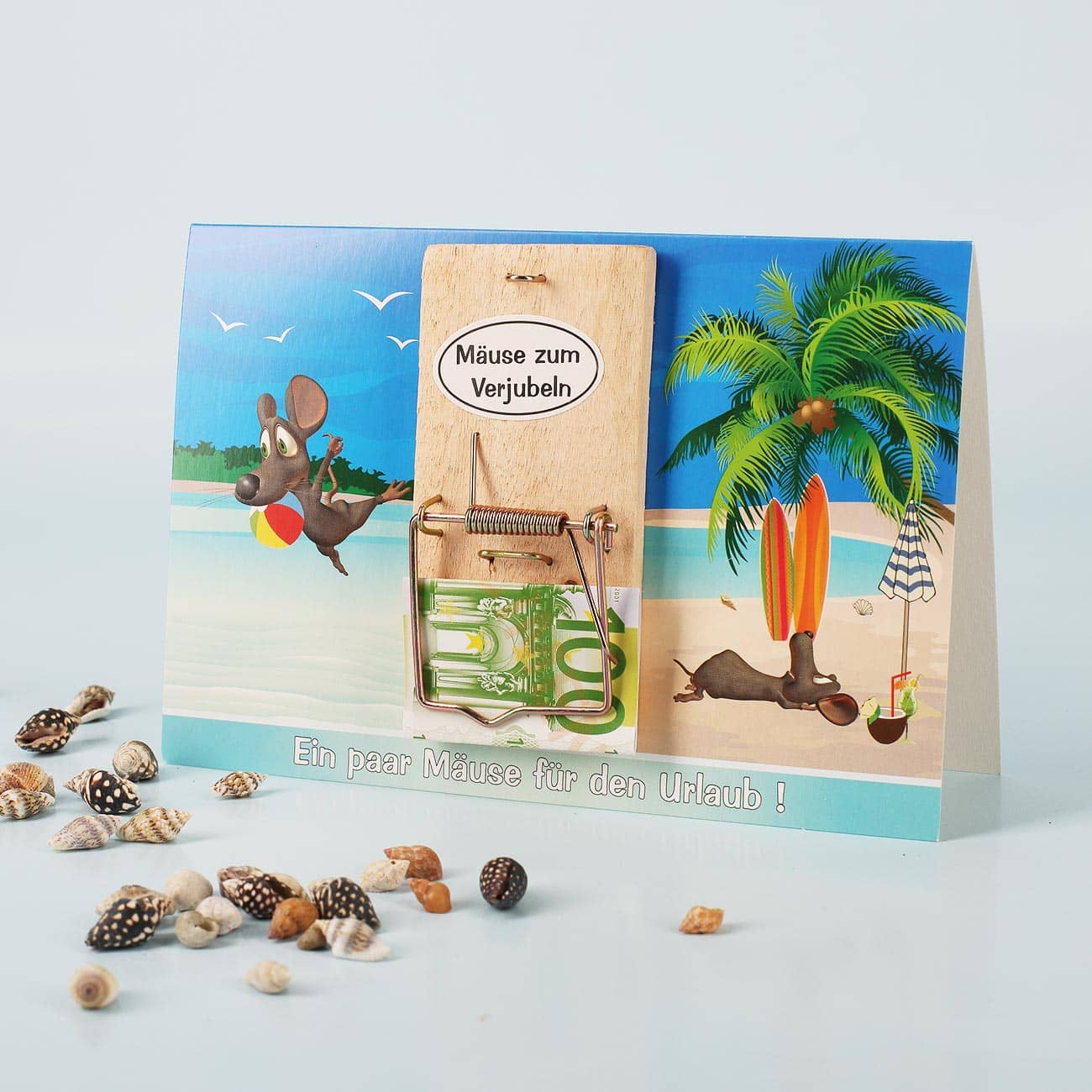 Geldgeschenk für Urlaubsgeld - Karte mit Mausefalle