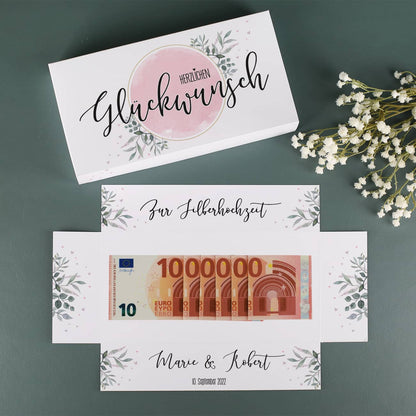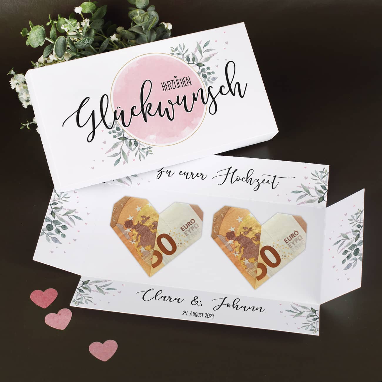 Geldgeschenk zur Hochzeit - Explosionsbox mit Namen, Datum & Text