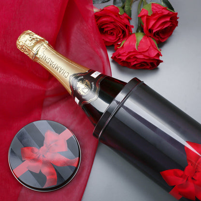 Eine Flasche Sekt oder ein guter Wein ist immer ein gelungenes Geschenk um auf den Ehrentag anzustoßen. Passend dazu haben wir die ideale Geschenkverpackung. Diese stilvolle Dose aus Blech bietet Sicherheit für die Glasflaschen und sieht zudem edel aus. Die rote glänzende Schleife verleiht der Dose ein hochwertiges Erscheinungsbild. Die Oberfläche der Dose ist matt mit einer Lackveredelung auf der Vorderseite in Form von vier senkrechten Streifen und über der Schleife.