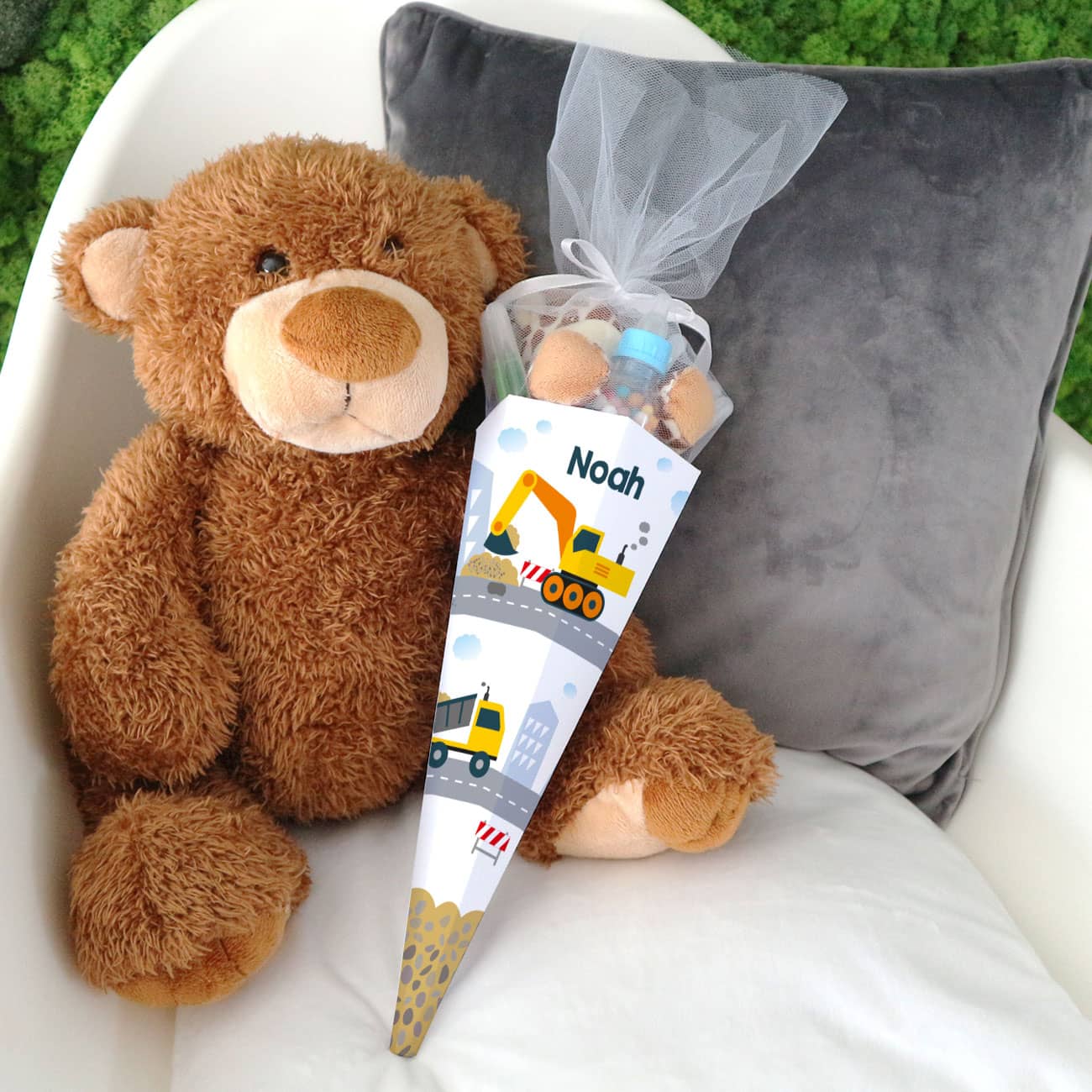 Schultüte für Geschwister mit Bagger