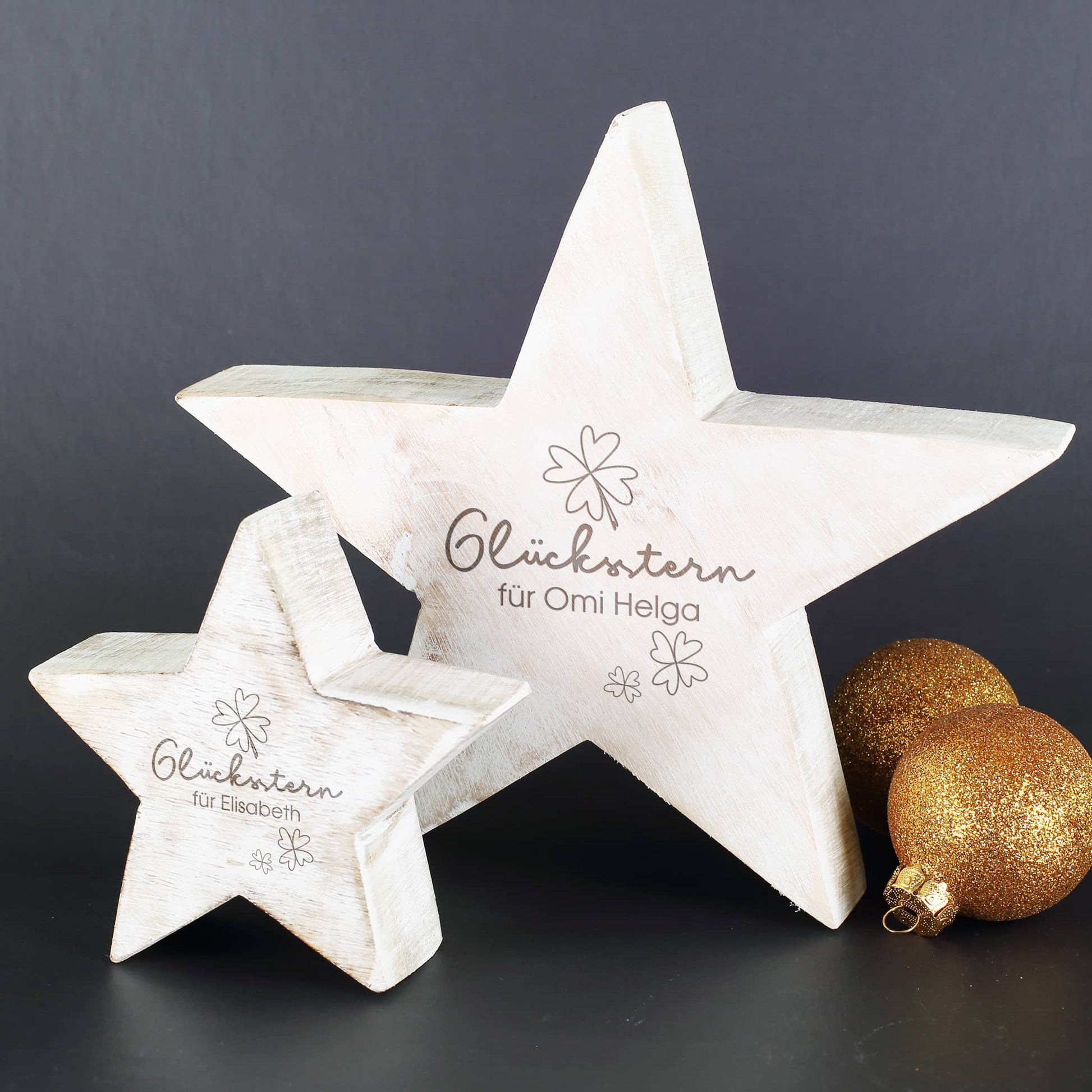Glücksstern - Holzstern in zwei Größen mit Ihrem Wunschtext