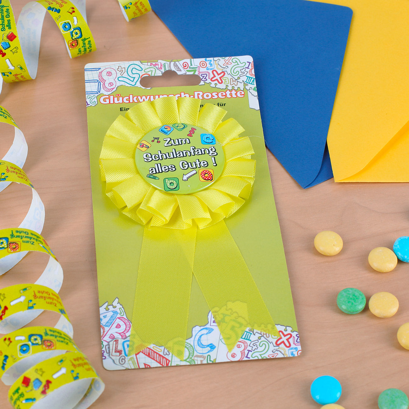 Glückwunsch-Rosette zum Schulanfang