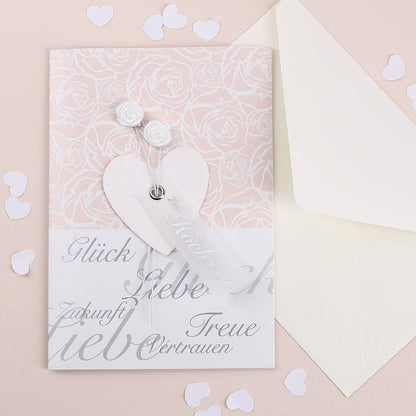 Glückwunschkarte zur Hochzeit mit Rosen- und Herz-Anhänger