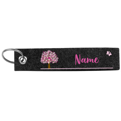 Dieser Schlüsselanhänger ist daher eine nette Aufmerksamkeit und perfekt für kirchliche Anlässe geeignet. Er erweist sich nicht nur im Alltag als praktischer Helfer, sondern dient auch als schöne Dekoration für einen jeden Schlüsselbund. Der Anhänger besteht aus festem, grauem Filz und besitzt die Maße 14 x 3 cm. Zusätzlich besitzt er eine kleine Öse, in welcher sich bereits ein passender Schlüsselring befindet. Bedruckt wird der Filzanhänger mit einem Lebensbaum, sowie einem Schmetterling. Beides ist in einem zarten Rosaton gehalten. Damit sich der Schlüsselanhänger einfacher seinem Besitzer zuordnen lässt, wird er mit Ihrem Wunschnamen personalisiert. Dafür stehen Ihnen 20 Zeichen zur Verfügung. Achten Sie bitte jedoch darauf, dass wir keine Sonderzeichen oder Emoticons abbilden können. Gerne können Sie unsere Vorschau nutzen, um sich vorab ein genaueres Bild von dem Schlüsselanhänger zu machen.