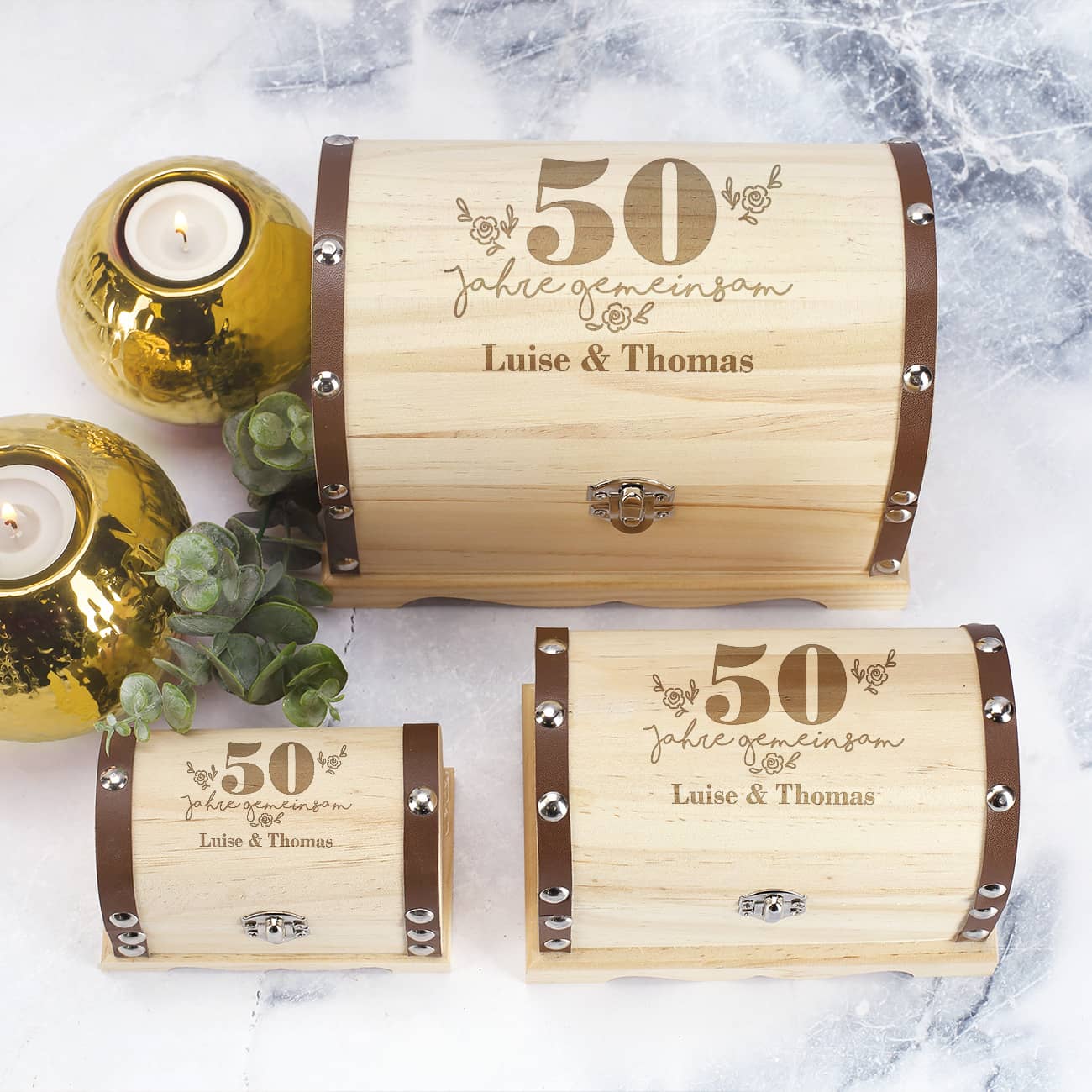 Gravierte Schatztruhe als Geldgeschenk zum Hochzeitstag
