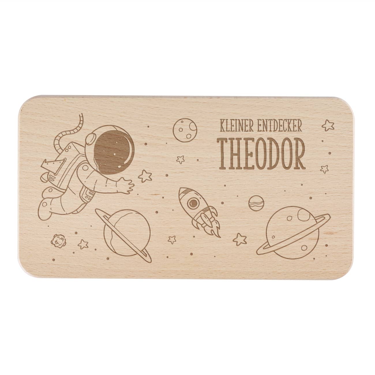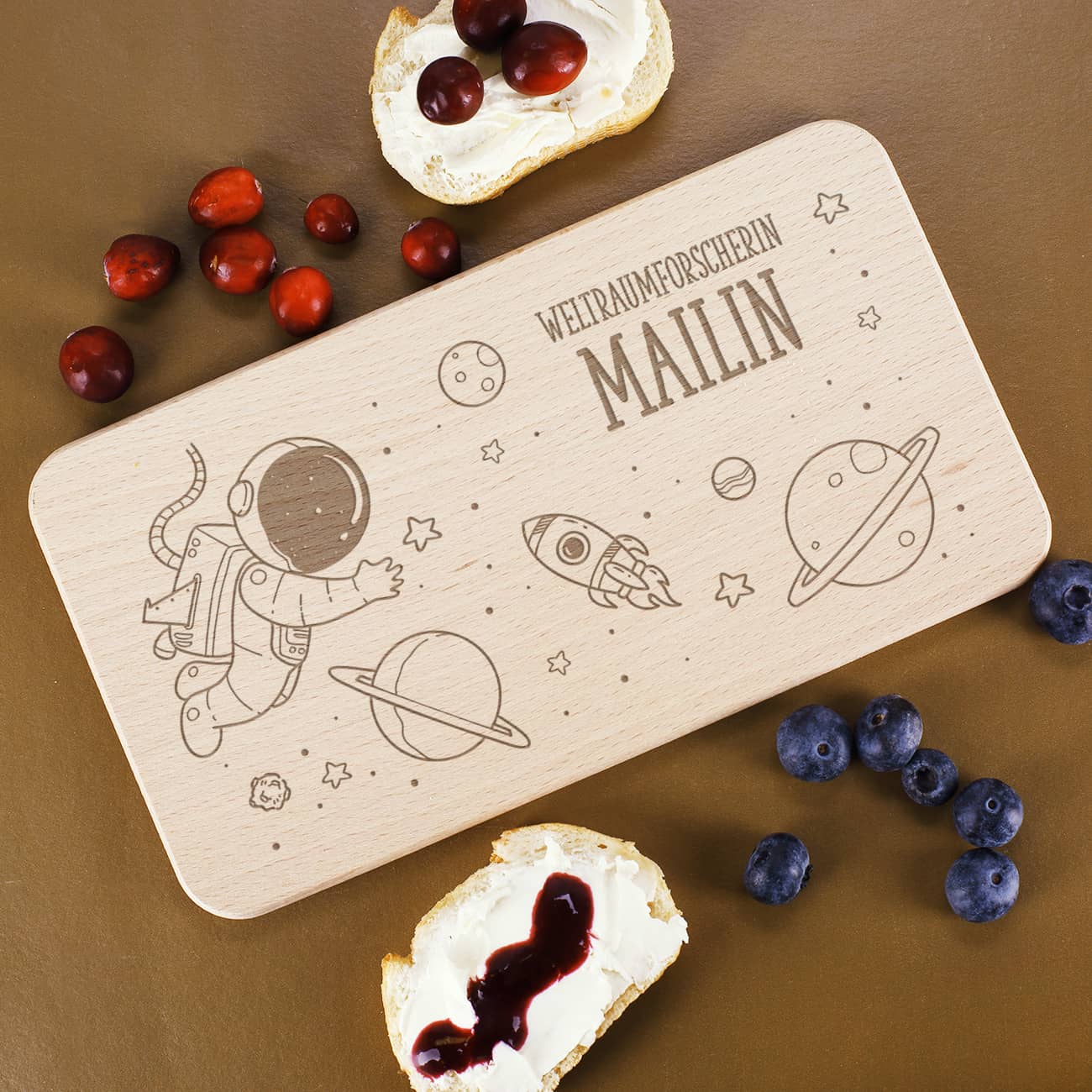 Graviertes Frühstücksbrettchen mit Astronaut im Weltall