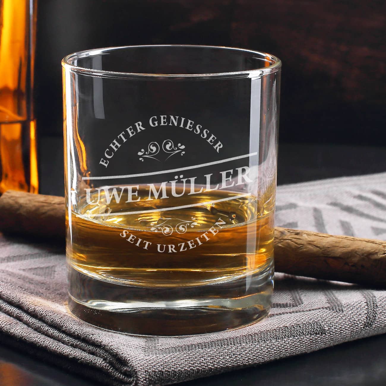 Graviertes Whiskyglas Echter Geniesser mit Wunschnamen