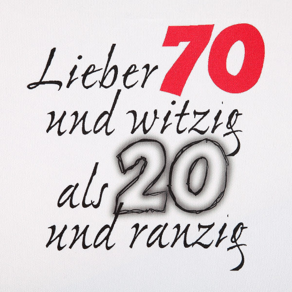 Sie sind zu einem 70. Geburtstag eingeladen und das Geburtstagskind ist ein lustiger Geselle? Dann liegen Sie mit diesem Geschenk garantiert richtig. Der große Latz mit dem Spruch „Lieber 70 und witzig als 20 und ranzig!“ ist ein witzige Geschenkidee, er kann als Deko auf der Party eingesetzt werden, aber natürlich auch zum Essen.