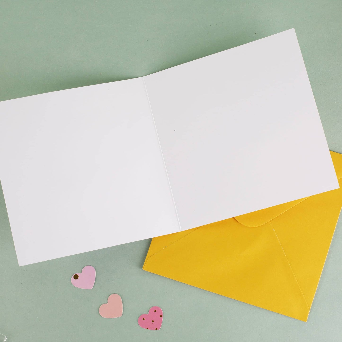 Der gelbe Briefumschlag verpackt die Karte nicht nur sicher, sondern rundet sie auch optisch als kleines Farbhighlight ab.