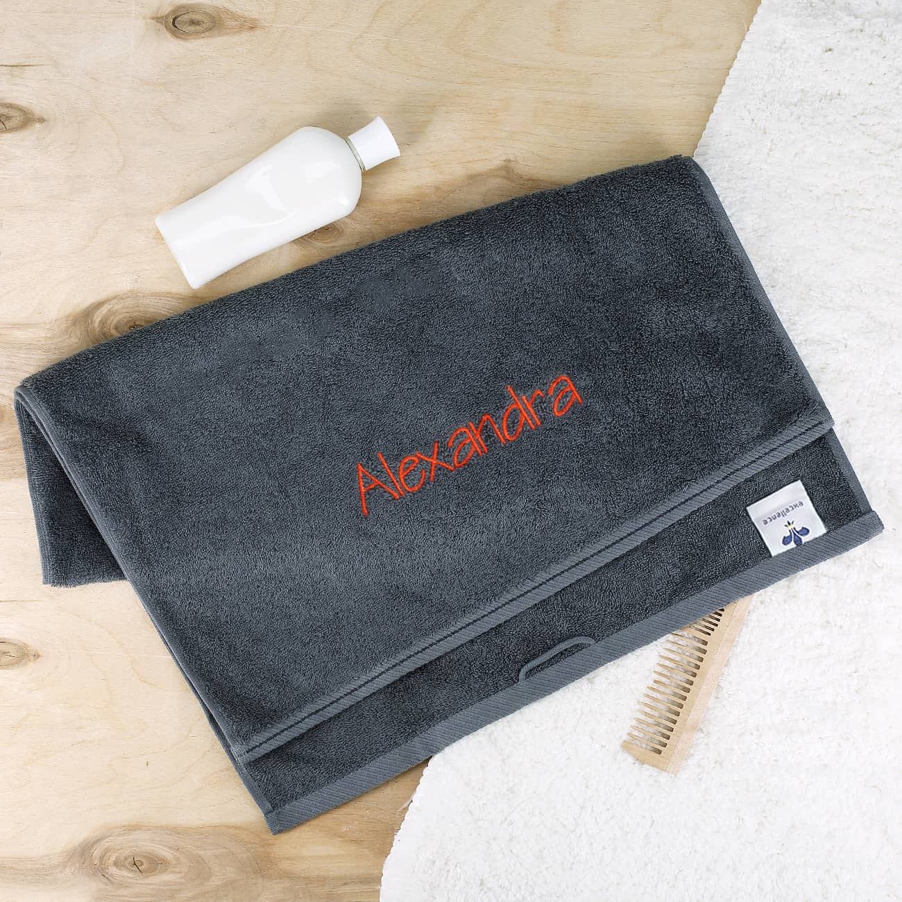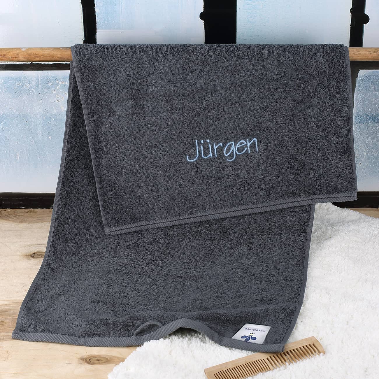 Ein absolutes Highlight in jedem Badezimmer sind diese personalisierten Handtücher in schiefergrau mit gesticktem Namen. Ob für den eigenen Gebrauch oder als Geschenk für Freunde und Verwandte - dieses Handtuch ist eine glasklare Geschenkempfehlung für alle, die Wert auf guten Stil legen.