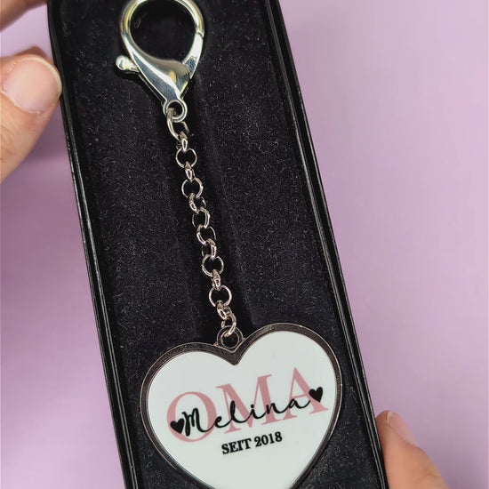 Herzförmiger Anhänger aus Metall mit Oma seit Motiv